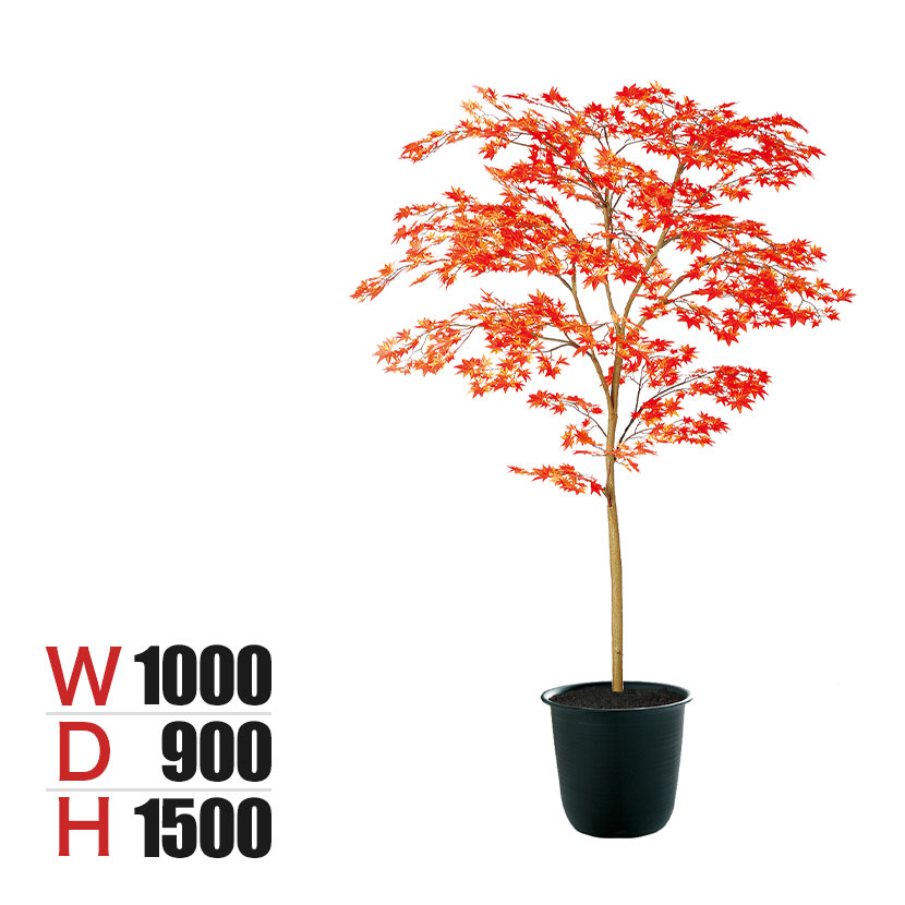 観葉植物 人工樹木 フェイクグリーン 造花 ヤマモミジ RED FST 高さ1500mm 鉢:ツリー7(BK)