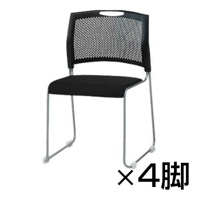 NSBシリーズ スタッキングチェア 背もたれ色:ブラック 4脚セット 布張り NSB-T10