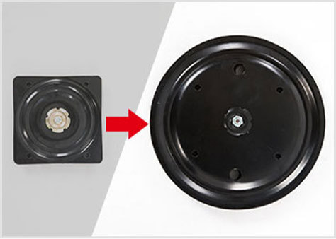 座ったままで楽に向きを変えることのできる360度回転台は、前世代モデルから設計を見直し直径も大きくしたことで安定性と耐久性が向上しました。