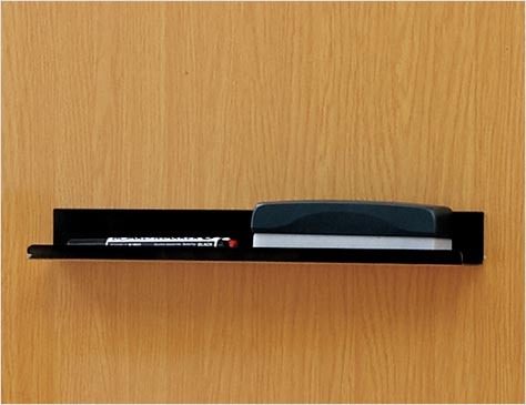自由な位置に変更できる便利なマグネットトレイ付き。マーカーとイレーサーも付属しています。