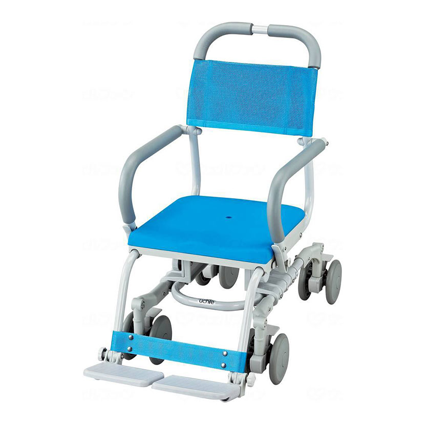 | 機能 | 座面高さ調節(20mmピッチ5段階) 座面シート取り外し 奥行調節 肘掛け跳ね上げ フットレスト跳ね上げ フットレスト着脱 4輪自在キャスター(ストッパー付き) |