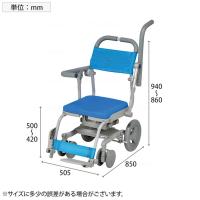 | 機能 | 座面360度回転 座面高さ調節(20mmピッチ5段階) 座面シート取り外し 奥行調節 肘掛け跳ね上げ フットレスト跳ね上げ フットレスト着脱 SAL(セーフティロック) ストッパー付きキャスター |