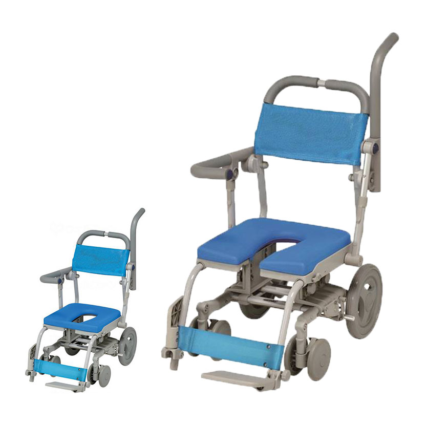 | 機能 | 座面高さ調節(20mmピッチ5段階) 座面シート取り外し 奥行調節 肘掛け跳ね上げ フットレスト高さ調節 フットレスト着脱 SAL(セーフティロック) ストッパー付きキャスター |