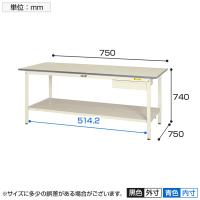 コストダウンと強度の確保を両立したエコモデルの作業台。小物整理に役立つ薄型キャビネット付き。キャビネットはスライドレール採用で、スムーズな開閉が可能です。均等耐荷重150kgで梱包や検品等、軽作業に適しています。高さ740mmで座り作業にお使いいただけます。天板は低圧メラミン化粧板、カラーはホワイトを基調としたシンプルデザインで作業現場・オフィス・学校・イベント会場など多様な環境に対応します。大きな荷物も収納できる全面棚板付き。