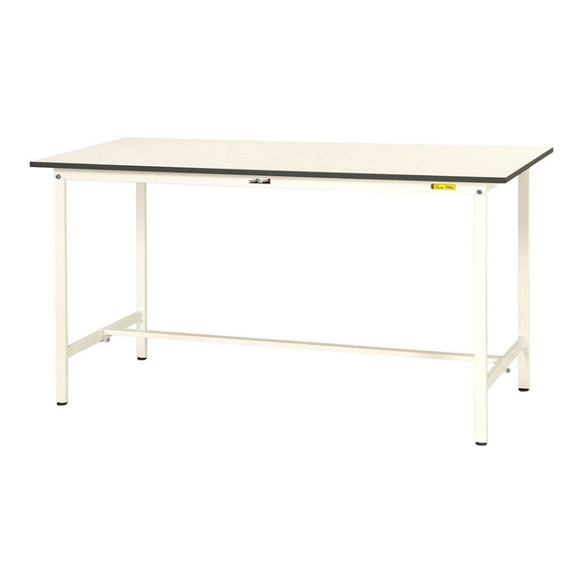 コストダウンと強度の確保を両立したエコモデルの作業台です。均等耐荷重150kgで梱包や検品等、軽作業に適しています。立ち作業の効率をサポートする高さ950mmです。天板は低圧メラミン化粧板、カラーはホワイトを基調としたシンプルデザインで作業現場・オフィス・学校・イベント会場など多様な環境に対応します。
