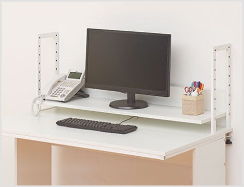 机上台にモニターを設置することで、視線が上がり、背中や首の負担を軽減します。お好みの高さに合わせて、長時間の作業もより快適に。