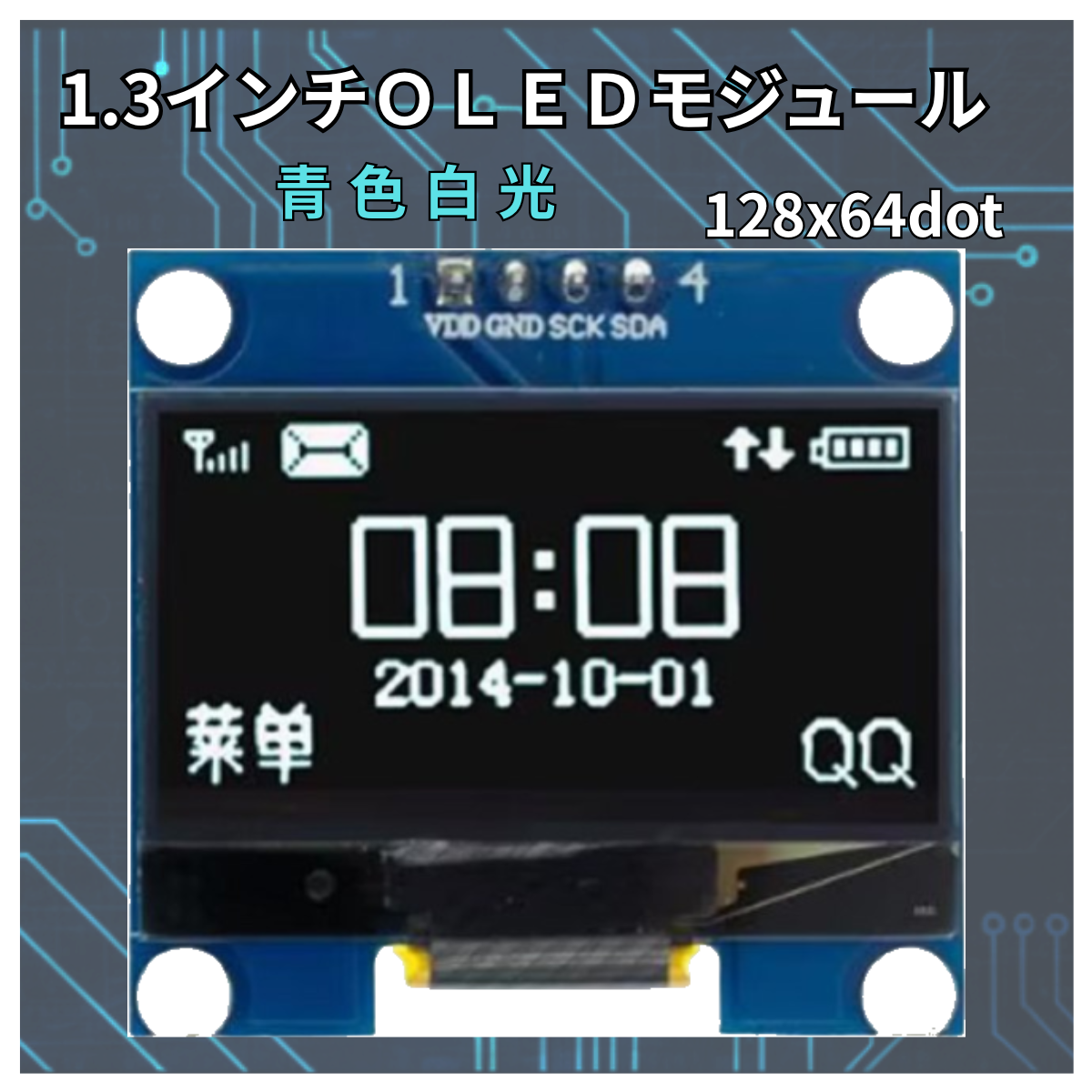 ディスプレイのサイズ:1.3インチ 電源電圧:3.3V-5V 解像度:128x64