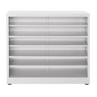【サイズ】W1000×D350×H910mm 【色】ニューグレー 【材質】スチール鋼板粉体塗装 【組立有無】無し(完成品) 【機能】高さ微調整機能、左右連結機能 事務所・学校・体育館などあらゆる施設に不可欠な国産高品質下駄箱です。 各段に棚板も付いているので、上はスリッパ下は外履きと使いやすく分けられています。 そしてすべての棚板ははめ込み式となっていて、プラスドライバーで簡単に取り外し可能となっております。ブーツや長靴などの長尺の収納物にも柔軟に対応できます。また、他社製品と違って高さ微調整用アジャスターも付いております、更に左右連結もでき、これで複数台並べて使う場合は床のクリフも柔軟に対応でき、しっかり連結固定すれば地震時の転倒防止にもつながります。かなり細部までこだわった設計となっております。