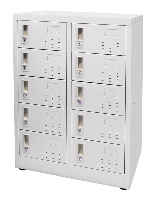 シューズボックス 細型 スチール製2列5段10人用 W600xD350xH945mm ミニロッカー 扉付き 鍵付き 下駄箱靴入れ靴箱