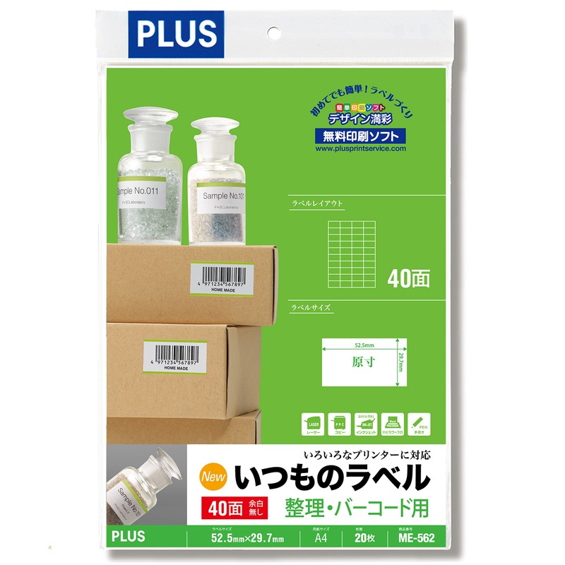 メーカー取寄せ商品 プラス(PLUS)ラベル いつものラベル 整理・バーコード用ラベル A4 40面 余白無し 20枚入 ME-562 48-650