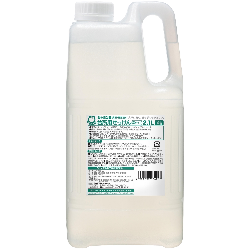 シャボン玉せっけん シャボン玉 台所用せっけん 泡タイプ つめかえ用 2.1L 1092 洗浄力 油汚れ 大容量 ボトル 衛生 汚れ 落とす
