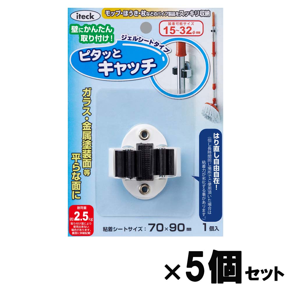 光 HIKARI ピタッとキャッチ ジェルシート15〜32mm 5個セット KMCH-13 掃除 収納 フック 整理整頓 ほうき モップ