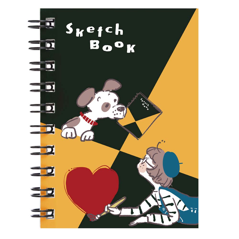 | 図案スケッチブックがかわいいミニチュアサイズになりました。「のりcorin」さんとのかわいいイラスト入りが入っています。 |