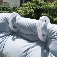 先端を引っ掛けて、片手で広げながら下ろすだけで挟めるふとんばさみ。