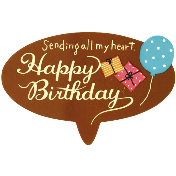 チョコプレートの代わりとしてもお使いいただけるようにデザインされたバースデイケーキピックです。風船やプレゼントのイラストがデコレーションケーキをより華やかに飾ってくれます。