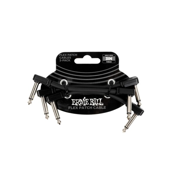 ERNIE BALL アーニーボール ギター/ベース用 パッチケーブル Flex Patch Cables 6443 ブラック 3インチ 7.6cm 3Pack