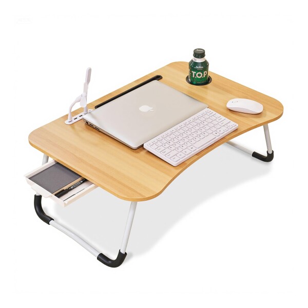 VECELO ローテーブル 北欧風 ナチュラル 幅60×奥行40×高さ26cm 木目×鉄脚 テレワークや朝食にも使える快適マルチテーブル USBポート付き ミニ扇風機&LEDライト付き