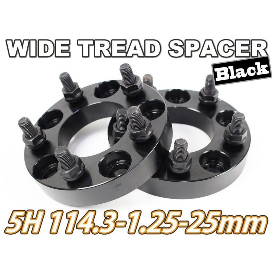 ●商品名●鍛造ワイドトレッド スペーサー 2枚組 5穴 PCD114.3 M12x1.25 25mm ブラック