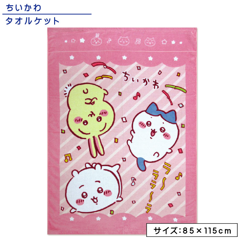 メール便送料無料 ちいかわ タオルケット ハーフサイズ 85×115cm 綿100% 制菌加工 紫外線遮蔽加工 裏面カラーパイル ハッピーな毎日 キャラクター okt
