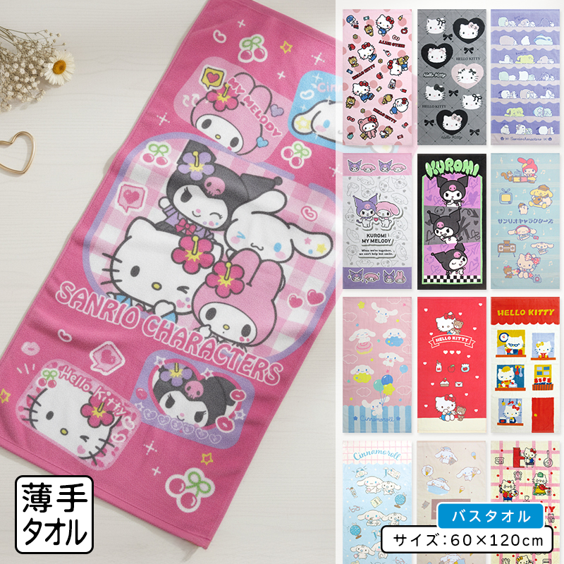 バスタオル サンリオ ハローキティ 60×120cm 綿100% キャラクター 保育園 幼稚園 小学生 プール 水遊び タオル 湯上りタオル 女の子 かわいい bt1 メール便A
