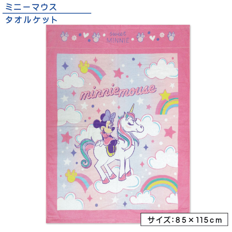 メール便送料無料 ディズニー ミニーマウス タオルケット ハーフサイズ 85×115cm 綿100% 制菌加工 UV加工 裏面カラーパイル ユニコーンファンシ お昼寝ケット