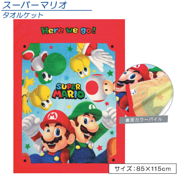 メール便送料無料 スーパーマリオ タオルケット ハーフサイズ 85×115cm 綿100% 裏面カラーパイル 制菌加工 お昼寝ケット 保育園 幼稚園 okt