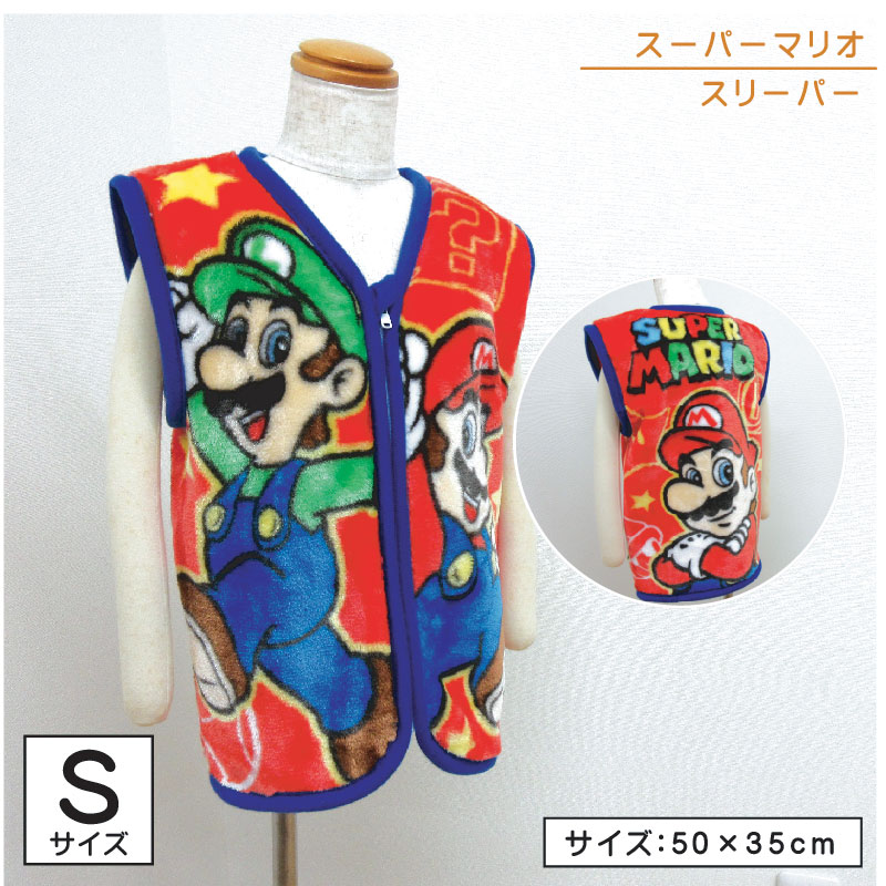 スーパーマリオ スリーパー 35×50cm Sサイズ ホットスター キャラクター ルイージ キッズ ベスト 子供 あったか 着る毛布 男の子 部屋着 メール便送料無料