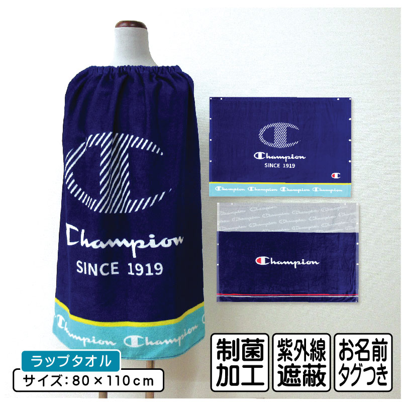メール便送料無料 チャンピオン Champion ラップタオル 80cm丈 ゴム入りギャザー ホック付き 紫外線遮蔽加工 制菌加工 裏面カラーパイル キッズ rp8 rp8s