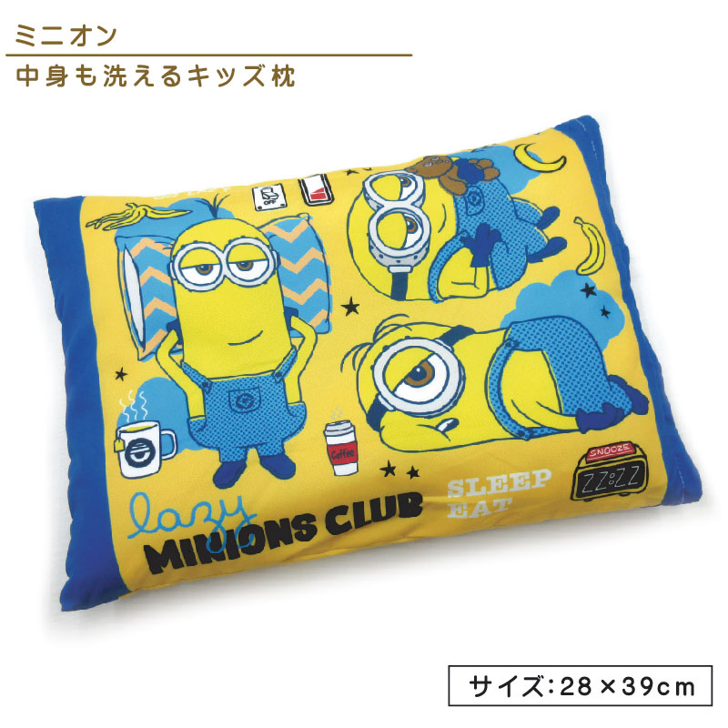 ミニオンズ ジュニア枕 28×39cm ウォッシャブル 洗える 清潔 まくら スリープチーム キャラクター ケビン スチュアート ボブ キッズまくら こども枕 jrp