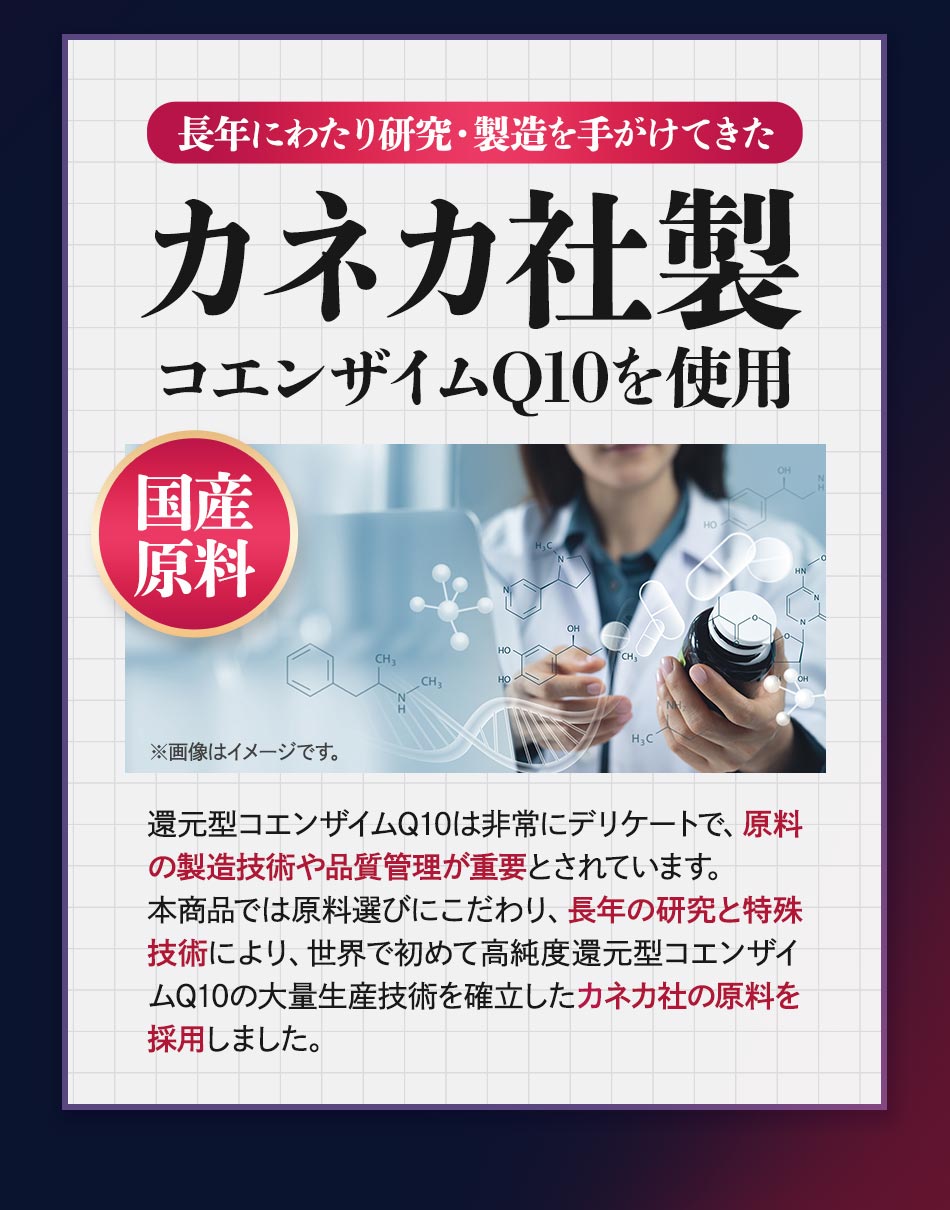 主要原料(1粒あたり):アマニ油 150mg / 還元型コエンザイムQ10 53mg