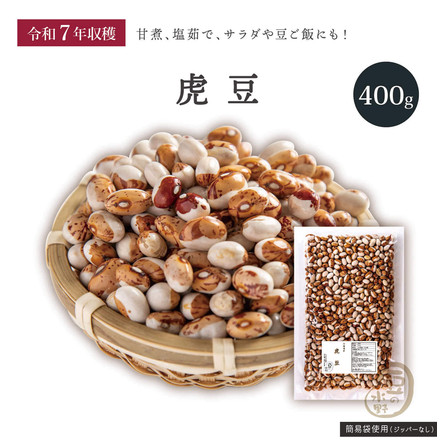 虎豆 400グラム 令和7年収穫 北海道産 【送料無料】 煮豆の王様 とら豆 とらまめ いんげん豆 インゲン豆 いんげんまめ
