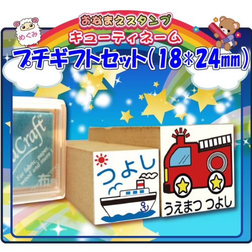 お名前スタンプ キューティスタンプ プチギフトセット 18ミリと24ミリのスタンプとスタンプ台付