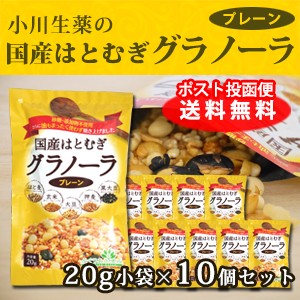 はとむぎ グラノーラ シリアル 添加物不使用 砂糖不使用 ノンシュガー 小袋 国産 はと麦 プレーン 100年以上続く 生薬会社 小川生薬 爆買 20g×10個セット
