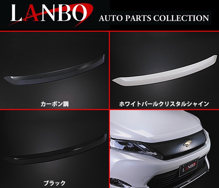| トヨタ 60系前期 ハリアー専用 LANBO ボンネットトップモールカバー 〜ボンネット先端にあるメッキモールを純正ボディー色にフルカバーすることでボンネットの一体感を演出。〜 【適合詳細】 ★60系前期 ハリアー専用 ボンネットトップモールカバー ◆年式:H25/12〜H29/5 ※こちらの商品は、60系前期用となります。 ◆型式:ZSU・AVU60/65 ◆カラー: ・カーボン調 [FG120-CB] ・ホワイトパールクリスタルシャイン [FG120-070] ・ブラック [FG120-202] ◆セット内容:ボンネットトップモールカバー ◆素材:ABS樹脂 ◆取付方法:本製品裏面に両面テープが施工されていますので貼り付けるだけで取り付けOKです。 ◆確認事項:その他詳細は、PC画面よりご確認ください。 ◆納期:2〜3日営業日後、メーカーより直送。 ※在庫状況により、お届けまでに約2ヶ月ほどお時間をいただく場合がございます。 【支払方法】 ・こちらの商品は、メーカー直送商品となりますので、【銀行振込】【クレジット決済】のみの対応となります。 ※【代金引換】はお選び頂けません。 お支払い方法に【代金引換】を選択された場合は「銀行振込」に変更し、ご案内させて頂きます。 |