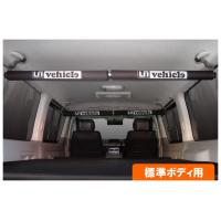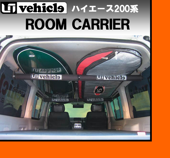 ルームキャリアーハイエース専用!アシストグリップに装着するだけの簡単装着!ドライバー1本でアシストグリップに固定するだけの簡単装着!!専用ブラケット採用によりハイエースの横幅を最大限活用し、ロングボードを2枚並列積載可能。高さ3段階調整。グリップ付ボルトで簡単高さ変更。20mm厚のウレタン製回転パッド付。