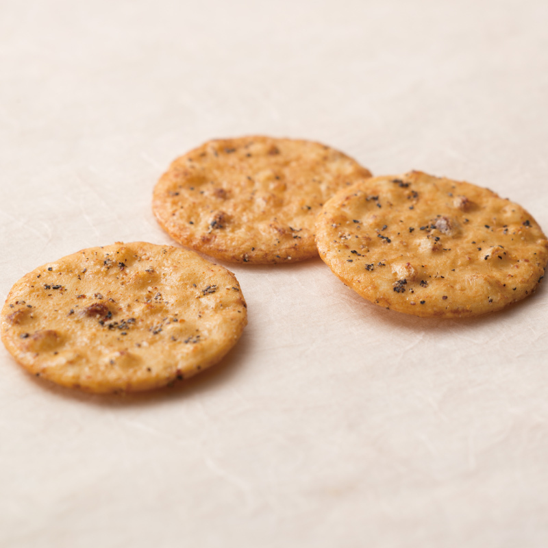 黒胡椒せんべいビールに合う!スパイシーせんべい。栽培管理された貴重な黒胡椒を使用。