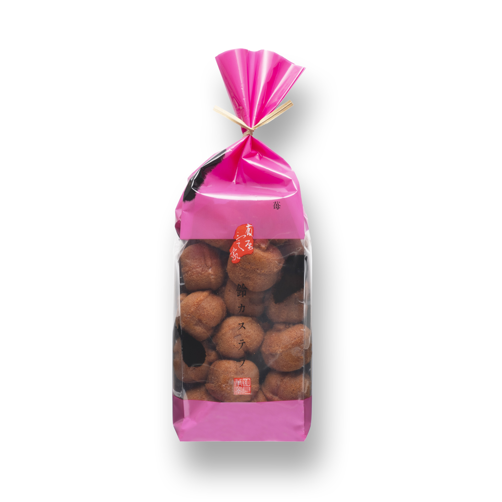 鈴カステラらしい程よい弾力としっとりした味わいはそのままに、優しい苺の香りと爽やかな苺の味わいを一粒ごとに閉じ込めました。優しい酸味のすっきりとした後味がついつい後をひく美味しさに仕上げました。この時期だけの味わいをお楽しみください。