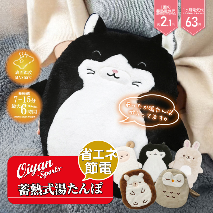 繰り返し使えるかわいい湯たんぽ お湯の入れ替え不要! 急速蓄熱・長時間あったか 最大6時間ぽかぽか 節電・省エネの今年の冬に最適!! 1回の蓄熱電気代約2.1円 1ヶ月電気代約63円(1日1回蓄熱した場合) 本体サイズ 【ひつじ】約320×320×75mm 【ねこ】約400×280×75mm 【うさぎ】約360×290×75mm 【ひつじ-25y】約345×310×45mm 【うさぎ-25y】約405×330×40mm 【黒ねこ-25y】約370×355×45mm 【ハリネズミ-25y】約295×250×50mm 【フクロウ-25y】約285×440×30mm 本体重量 【ひつじ】約1387g(カバー:約87g、湯たんぽ:約1300g) 【ねこ】約1396g(カバー:約96g、湯たんぽ:約1300g) 【うさぎ】約1383g(カバー:約83g、湯たんぽ:約1300g) 【ひつじ-25y】約1322g(カバー:92g、湯たんぽ:約1230g) 【うさぎ-25y】約1335g(カバー:105g、湯たんぽ:約1230g) 【黒ねこ-25y】約1349g(カバー:119g、湯たんぽ:約1230g) 【ハリネズミ-25y】約1326g(カバー:96g、湯たんぽ:約1230g) 【フクロウ-25y】約1304g(カバー:74g、湯たんぽ:約1230g) ●蓄熱用電源コード重量:約120g ●充電コード長:約60cm 定格電圧:AC100V 50/60Hz 定格消費電力:400W 蓄熱時間:約7〜15分間※室温等により時間は変動します。 使用時間:約2〜6時間※最大時はお布団の中で使用した場合 セット内容:湯たんぽ、保温カバー、蓄熱用電源コード、取扱説明書 ●素材・成分:カバー:ポリエステル 蓄熱式湯たんぽ:PVC、ポリエステル、ポリカーボネート、ポリプロピレンエポキシ樹脂、銅、304ステンレス、ABS、水 ●カラー:ひつじ・ねこ・うさぎ・ひつじ-25y・うさぎ-25y・黒ねこ-25y・ハリネズミ-25y・フクロウ-25y ●サイズ:OS 【PSEマーク】 ●蓄熱式湯たんぽ ・PSEマークの種類 : 丸形PSEマーク(特定電気用品以外の電気用品) ・届出事業者名 : 株式会社ヒロ・コーポレーション |