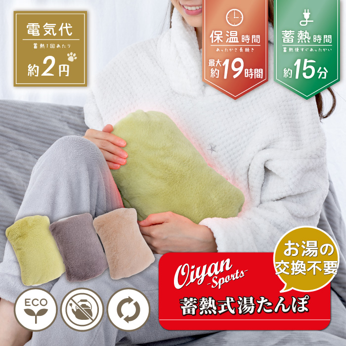 面倒なお湯の交換が不要!何度も繰り返し温めて使える蓄熱式湯たんぽです。 蓄熱式ぽかぽか湯たんぽ ・面倒なお湯の交換は一切不要で、繰り返し使える蓄熱式の湯エコたんぽです。 ・寝るときだけではなく、日常生活で冷えを感じたときに湯たんぽを使えば血流の改善にもなります。 ・肌を乾燥させずに、体をじんわりと温めてくれます。特に、お腹や腰などをあたためると、血流がよくなり、生理痛の悩みにも効果的です。 急速蓄熱&長時間保温 ・蓄熱湯たんぽとして…腰や手、おなかなど体のあたために ・蓄熱あんかとして…寒い冬の布団のあたために ※保温時間は室温やご使用状況によって異なります。 色々な場所で大活躍 ・コードレスで使える蓄熱式湯たんぽなので、持ち運びが簡単でとても便利です。 ・自宅やオフィス、スポーツ観戦、車内、布団の中など色々な場所で大活躍します。 使い方簡単!! ・コンセントに専用充電コードを差し込み蓄電開始! ・15分程待ってランプが消えると蓄電完了! ・ふわふわカバー付き(カバーは取り外しができますのでいつも清潔にお使いいただけます) 経済的&省エネ ・蓄熱1回あたりの電気代…約2円 気になる電気代の節約に!省エネなので節電対策に。暖房を控えて蓄熱式湯たんぽを使えば、お財布にも環境にも優しい。面倒なお湯の交換不要で繰り返し使用することができます。 【製品仕様】 電源:AC100V 50/60Hz 消費電力:300W 蓄熱時間:約15分(室温等により温度は変動します) 使用時間 最大19時間(使用環境によって継続時間は異なります) 【付属品】 本体・カバー・専用電源コード(長さ約70cm)・取扱説明書・保証書 ●商品重量:約1.2(誤差±100g、電源コード含めない) ●素材:本体:ポリエステル・ABS・PVC 専用カバー:ポリエステル 電源コード:ABS・PP 本体内液:水 ●カラー:ベージュ・チャコールグレー・ピスタチオ ●サイズ:約26cm×18cm×6cm 【PSEマーク】 ●電源プラグ ・PSEマークの種類 : 丸形PSEマーク(特定電気用品以外の電気用品) ・届出事業者名 : 株式会社グローバル・ジャパン |
