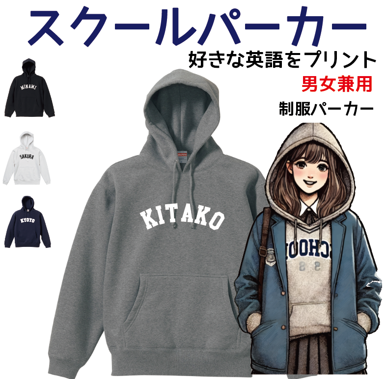 通学・部活・イベント・普段着に、自由なスタイルで楽しめるスクールパーカーです!