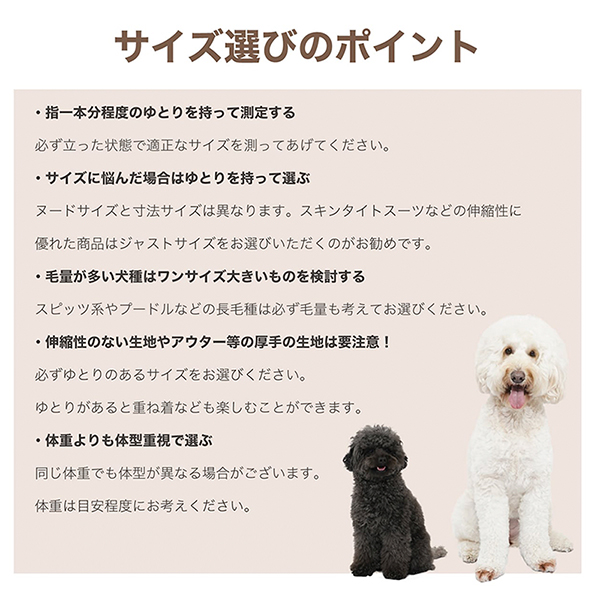 ※対応犬種はあくまで目安となります。個体差がありますのでペットのサイズを測った上でお選びください。