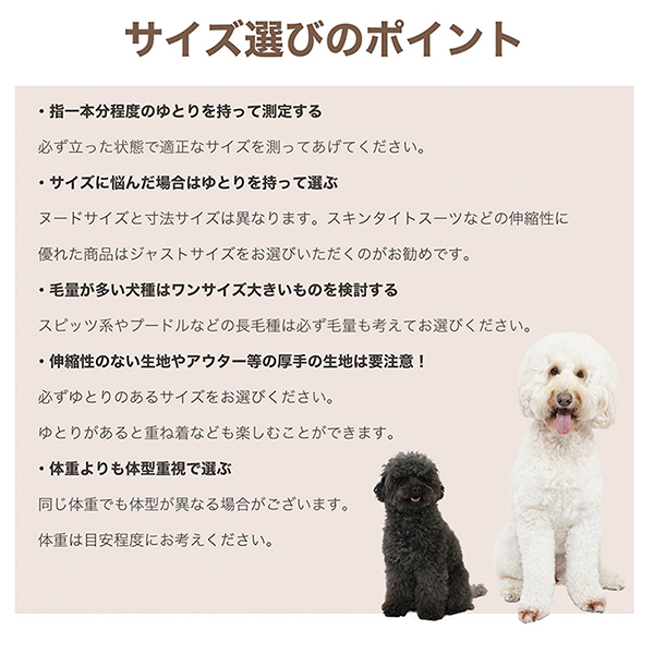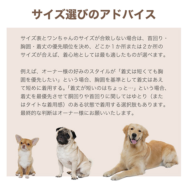 ※対応犬種はあくまで目安となります。個体差がありますのでペットのサイズを測った上でお選びください。