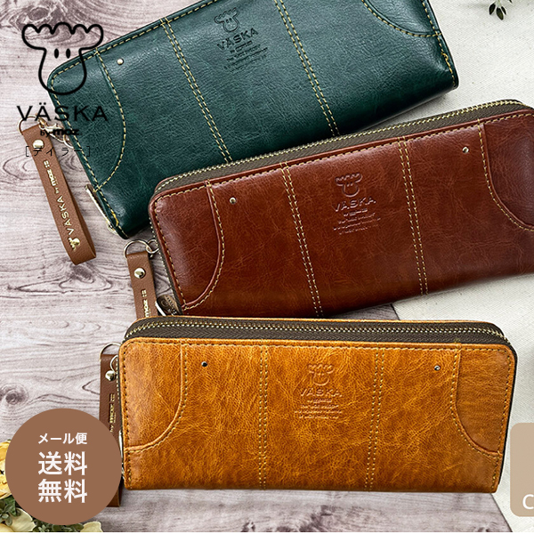 VASKA by moz モズ 財布 長財布 レディース ブランド 使いやすい 札入れ テイラー ラウンドファスナー グリーン おしゃれ 北欧 可愛い