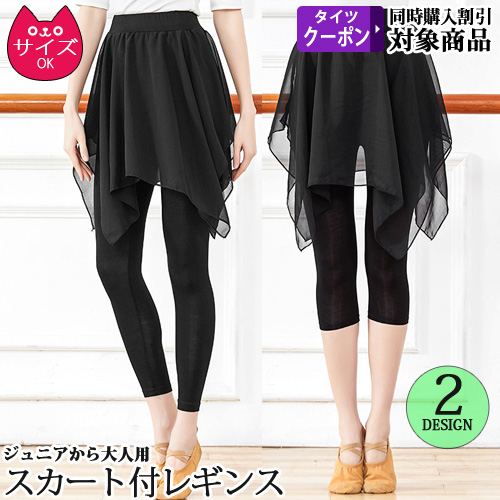 バレエウォームアップ アシメスカート付レギンス スカート付スパッツ 10分丈 7分丈 ジュニアから大人用