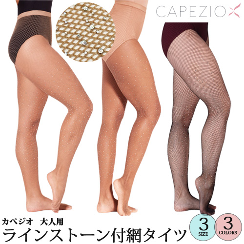 網タイツ ラインストーン付 ダンスタイツ ガールズダンス ヒップホップタイツ 社交ダンス ジュニアから大人用 Capezio カペジオ