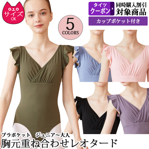 バレエレオタード ジュニアから大人用 胸元重ね合わせ フリルタンク パッドポケット付