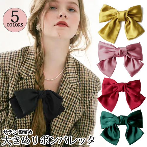 大きめサテンリボンの付いたバレッタです。