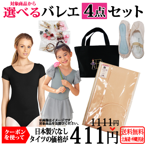 バレエ4点セット専用タイツ レオタード1着と対象商品2点同時購入用日本製穴なしタイツ クーポンで700円割引