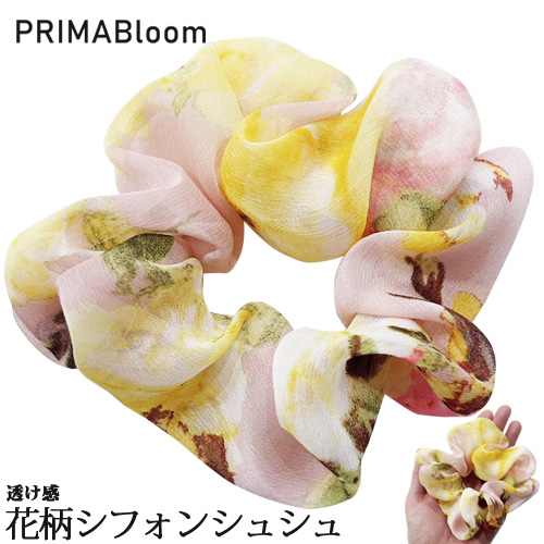 花柄プリントのシフォンシュシュ ヘアゴム ハンドメイド【プリマ・ブルーム】日本製