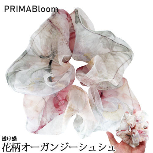 花柄プリントのオーガンジーシュシュ ヘアゴム ハンドメイド【プリマ・ブルーム】日本製
